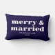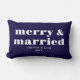 Modern Merry & Married Personalised Blue Christmas Lumbar Pillow. Personalise it with your names and year.