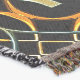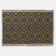 A beautiful, intricate, geometric design of and orange and greyish blue Celtic knot over a black background, with a modern, metallic texture.