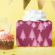 Mid-Century Modern 3-d metallic-look Christmas trees in a silky, striped gradient - soft rose pink on a dark burgundy wine background