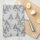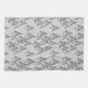 Mid-Century Modern 3-d metallic-look Christmas trees in a silky, striped gradient - pale silver to pewter grey / grey on a light silver grey background