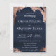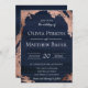 Modern and elegant trendy faux copper leaf with moody midnight blue watercolor background wedding invitation. Customise text, font style, colour and size.