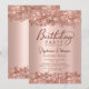 Modern Metallic Rose Gold Glitter 90th Birthday Invitation