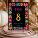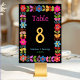 Bring bold elegance to your reception tables with this Modern Mexican Wedding Table Number card. Framed by a vibrant array of colourful florals inspired by traditional Mexican folk art, the striking design features rich hues of red, yellow, pink, and turquoise set against a deep black background. The eye catching contrast ensures the table number stands out clearly, while the festive floral frame adds warmth, culture, and celebration to your décor. Perfect for couples who want to blend modern style with joyful, heritage-inspired details.