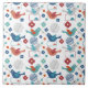 A super cute pattern of little birds, flowers and shapes inspired by retro mid century designs in on lovely tones of teal, blue, burgundy, white and grey