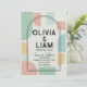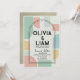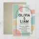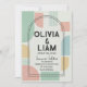 Set the tone for your unique celebration with this eye-catching Modern Mid-Century Geometric Wedding Invitation. Featuring a vibrant yet sophisticated palette of mint green, soft peach, and mustard yellow, this design blends retro inspiration with contemporary flair. The layout showcases bold abstract shapes and a striking double-arch frame that elegantly highlights your names and event details.