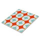 A trendy clean fresh modern geometric flower circle shapes design inspired by retro mid century patterns in on trend shades of light teal, orange, t white and green.
