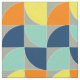 Very stylish and on trend design with quarter circle repeat tile pattern; inspired by mid century retro graphics. Fabulous mix of colours in grey, teal, blue, golden yellow, orange.