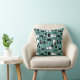 Modern Mid Century Geometric Teal Black Retro Cushion