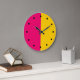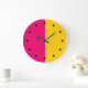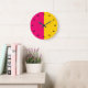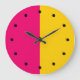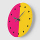 Bold modern mid century modern wall decor clocks in a true minimalist design in pink and yellow gold colours and clock markings. Works well as a modern office clock, home decor clock, or play room clocks.