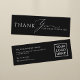 The front features an elegant “Thank you for your purchase” message, making customers feel appreciated right away. The back is fully customizable with your business name, a short thank-you message, phone number, email address, and logo. This allows you to share key contact details while reinforcing your brand.