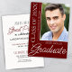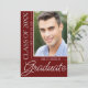 Modern Minimal 1 Photo Maroon Burgundy Graduation Invitation. Add your favourite graduation photo, personalise the trendy script and modern typography for the perfect combination of Simple and Elegant for your single photo graduation announcement keepsake. Change colours by clicking "Personalise" then scrolling down to click "Edit using design tool".