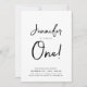 Modern Minimal 1st Birthday Script Black & White Invitation