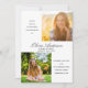 This modern minimal graduation party invitation offers two square photo frames on the front. Custom text allows you to add the name and school of the graduate and the party invitation details. The back side features a geometric pattern in a pastel gold colour.