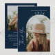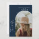 Modern Minimal 2 Photo Script Navy Blue Graduation Thank You Card
