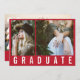 Modern minimal 3 photo graduation simple contemporary announcement card. Bold graphic red and white design.