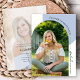 This modern graduation invitation features a trendy arched photo. The design is accented with a dusty blue colour and handwriting style text. The backside offers a full photo with the invitation text overlay.
