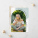 This modern graduation announcement features a trendy arched photo. The design is accented with a light sage green colour and handwriting style text. The backside offers a full photo with custom text for your graduation and future plans details.