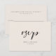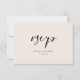 Modern Minimal Beige Script Wedding RSVP Card. Personalise with bride and groom names, your wedding date, and your custom wedding response wording on the back, including your wedding website.