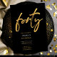 Celebrate in style with our customisable Modern Minimal Black and Gold 40th Birthday Invitations! a unique script calligraphy in faux gold, reads Forty with a simple and elegant black and gold design. Make your milestone birthday unforgettable with this stylish adult birthday party invitation.