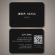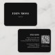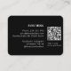 Modern Minimal Black QR Code Business Card. Edit your product in minutes by adding your data. Personalise your name or business name. This double-sided card allows ample room on the backside for your contact info and details.