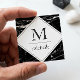 Modern Minimal Black White Marble Monogram Logo Square Business Card
