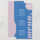 Our minimal, bold retro style wedding menu card is perfect for the trendy couple who loves standing out and making a bold statement. Our design features a bold bright blue and purple colour combo. A simple abstract arch and circle shapes create a bold look with the "menu" displayed boldly in white large font. The reverse side features a bold monogram. Designed by Moodthology Papery