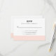 A simple, elegant wedding RSVP card that features a blush pink stripe across the bottom, and a crisp white background with bold black text.