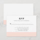 A simple, elegant wedding RSVP card that features a blush pink stripe across the bottom, and a crisp white background with bold black text.