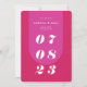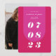 Our minimal, bold retro style wedding save-the-date card is perfect for the trendy couple who loves standing out and making a bold statement. Our design features a bold bright pink-magenta colour combo. A simple abstract arch shape creates a bold look with the wedding date displayed boldly in white large font. The reverse side features a full photo layout with a bold monogram and an optional couple's wedding website address. Designed by Moodthology Papery