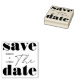 Trendy and modern save the date rubber stamp with "Save the Date" prominently displayed in a bold print layout. Customise with the couple's name.