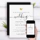 This chic wedding invitation shines with simplicity. Modern typography, gorgeous calligraphy accented by a pretty heart in (printed) gold, this suite is both minimal and elegant. Space for more details on the back (or leave blank).