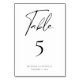 Modern Wedding Table Number sign with elegant calligraphy script in black and white. Customise it with your own names, date and table numbers.