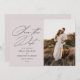Announce the good news in style with this elegant photo save the date card featuring elegant calligraphy. The reverse side features more room for any additional details you may wish to provide to your guests.