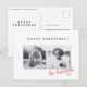 Modern minimal Christmas two photo family holiday Postcard