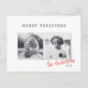 Modern minimal Christmas two photo holiday postcard.