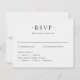 This affordable elegant wedding RSVP card design features a minimalist black and white layout that blends timeless sophistication with modern clarity. One side showcases a delicate dove and floral crest design above the couple's names and wedding date, creating a refined, personalised touch. The other side presents a clean and organised RSVP form with space for guest responses, meal selections, and a reply-by date. Perfectly matching the rest of the coordinating wedding suite, this budget RSVP card maintains a cohesive aesthetic ideal for formal, romantic, or destination weddings, offering both style and function for a beautifully streamlined guest experience.