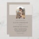 Simple with modern minimal styling, this elegant wedding invitation features an arch photo template to personalise with your selected photo. Two tone neutral shades of light beige and taupe beige add simple styling to this invitation. An elegant font pairing includes a combination of serif fonts with a calligraphy accented "and" joining the bride and groom's names. The back of the invitation has a QR code template for including your wedding website information. You can have guests RSVP on your website as well as find all the details about your wedding schedule, events, transportation, hotel accommodations, etc. This invitation is a wonderful choice for weddings year-round. You can change the background colours to suit your wedding colour palette by selecting "edit using design template" and changing the background layer colours to your liking.