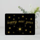 A modern minimal Happy New Year card featuring twinkling stars and script lettering in real gold foil. Add your own custom holiday message to the back or delete the text to leave the back blank.