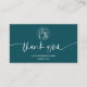 Modern minimalist script brush emerald green business order thank you. Add your social media. With an elegant signature script font, all the colours are editable , add your logo. 5 star review for your customers.