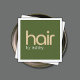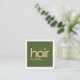 Modern fully customisable business card template for hair salon, hairdresser. Minimal cool design with faux metal bold hair text and olive green background.