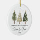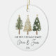 This charming ornament captures the magic of your first Christmas engaged with its minimalist design and sentimental value. The delicate watercolor illustration of three Christmas trees adds a touch of whimsy, while the customisable text allows you to make it uniquely yours. Hang it on your tree, display it on a shelf, or give it as a heartfelt gift to the special couple in your life. Made from high-quality ceramic, this ornament is designed to be a cherished part of your holiday traditions for years to come. Whether you're celebrating your own engagement or shopping for newlyweds, this Modern Minimal First Christmas Engaged Ceramic Ornament is the perfect way to commemorate this special milestone.