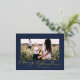 Modern minimal foliage 1 photo script elegant blue foil holiday postcard