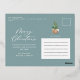 Modern minimal foliage 1 photo script elegant blue foil holiday postcard