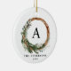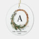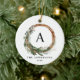 Modern minimal foliage wreath peace script holiday ceramic ornament