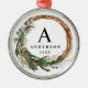 Modern minimal foliage wreath peace script holiday Christmas ornament. Hand painted eucalyptus, minimal foliage and modern rustic rattan wreath give this holiday ornament a luxurious feel. In classy greens, browns and greys. edit the initial and the fmaily to make it extra special.