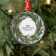 Modern minimal foliage wreath peace script holiday Christmas ornament. Hand painted eucalyptus, minimal foliage and modern rustic rattan wreath give this holiday ornament a luxurious feel. In classy greens, browns and greys. edit the initial and the fmaily to make it extra special.