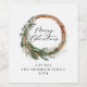 Modern minimal foliage wreath peace script holiday wine label