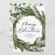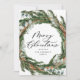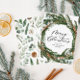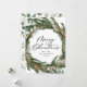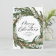 Modern minimal foliage wreath script Merry Christmas holiday Christmas card. Hand painted eucalyptus, pine tree branch, minimal foliage and modern rustic rattan wreath give this holiday card a luxurious feel. In classy greens, browns and grays.