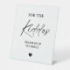 It is sturdy than I expected. Was worried about the material being flimsy but it is not. It is printed on some sort of plastic material. It should serve well at our wedding as long as wind isn’t too bad. Otherwise we will put some paper weights behind it and should be fine.