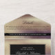 Modern, chic, minimal, vintage, simple black and metallic gold all-in-one wedding invitation with custom picture of the couple at the back.